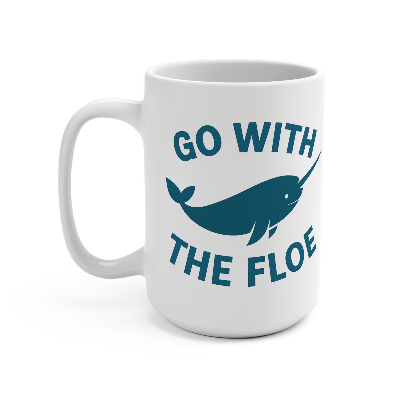 Go With The Floe – Retro Narwhal Silhouette 15oz Ceramic Mug | Fat Merman Designs 🐋☕❄️