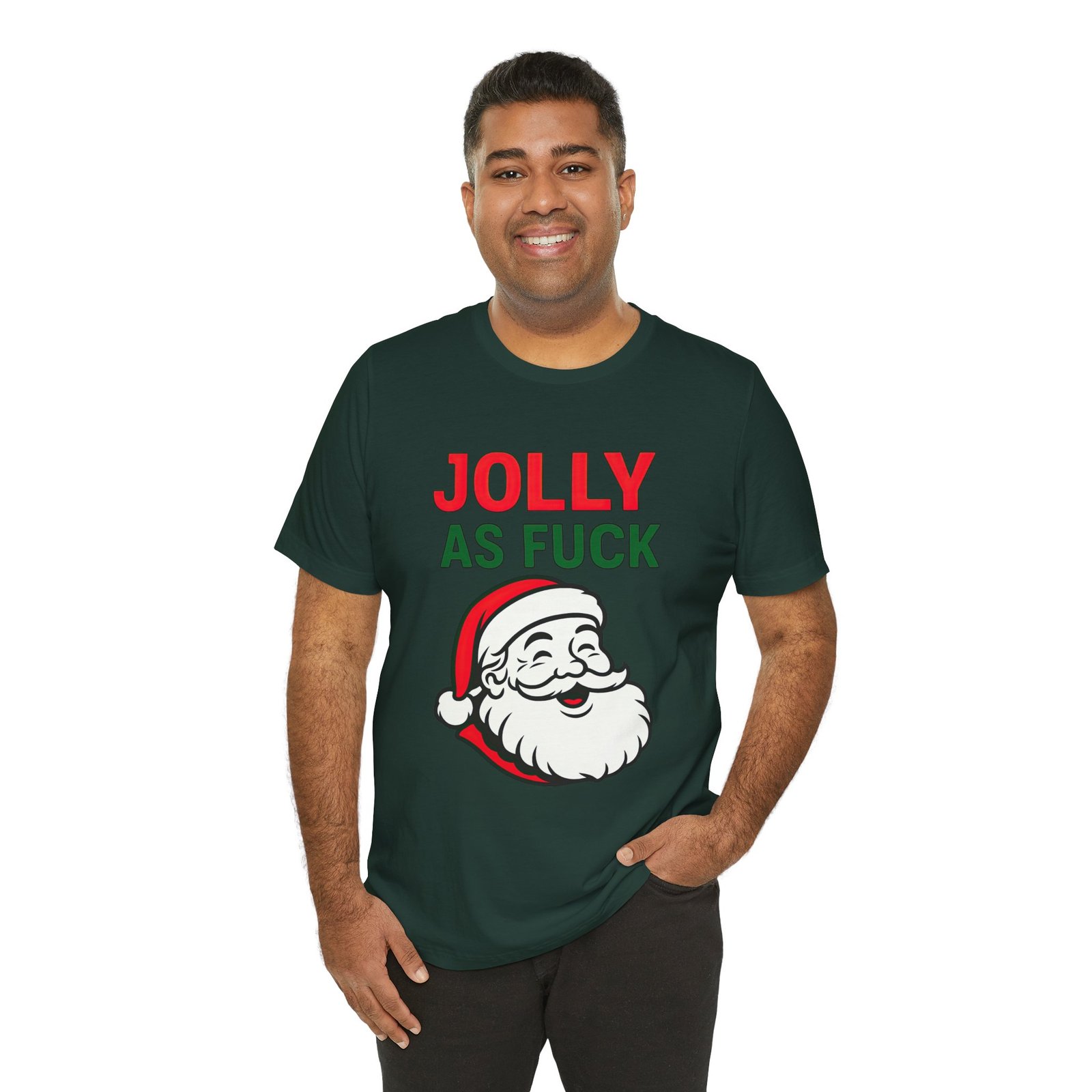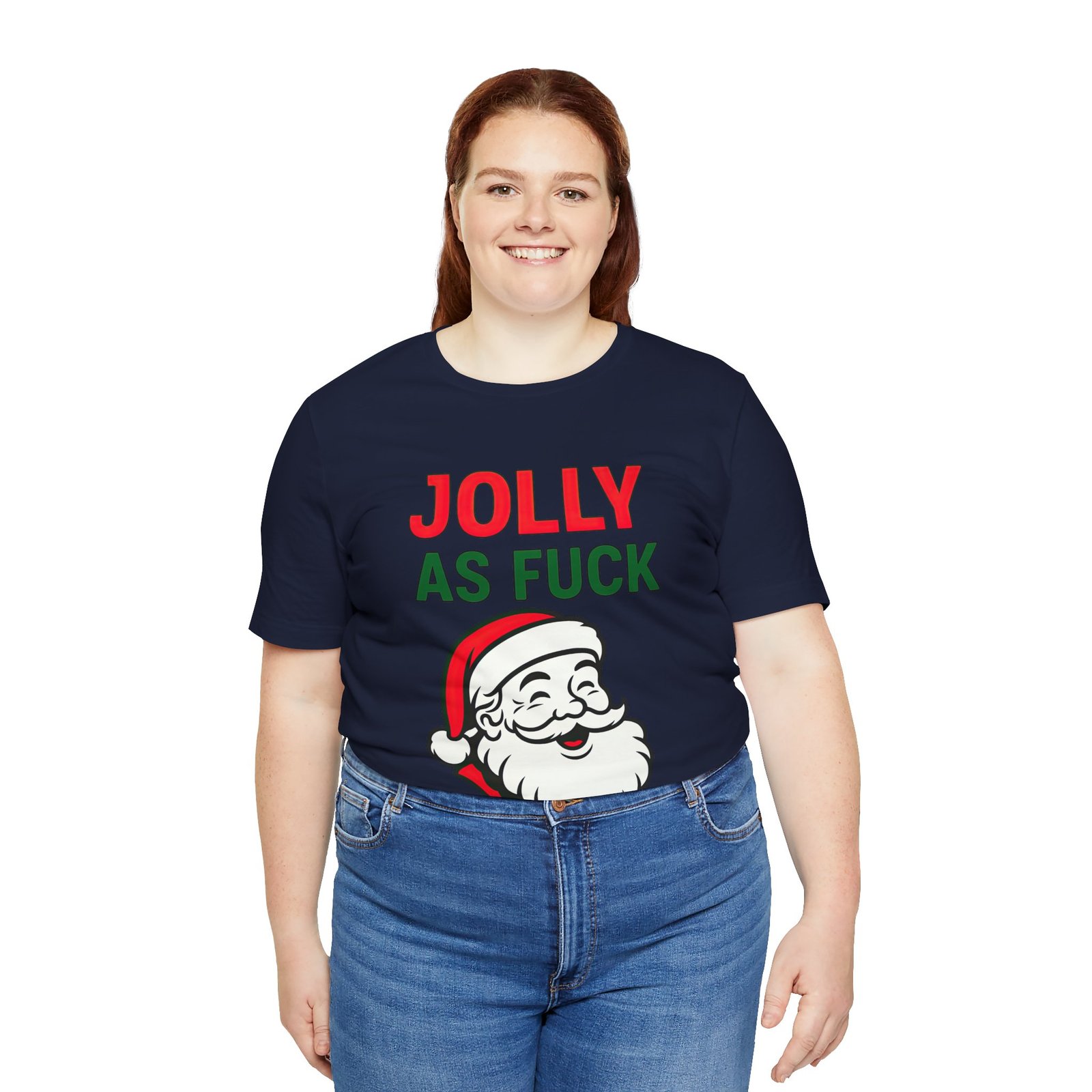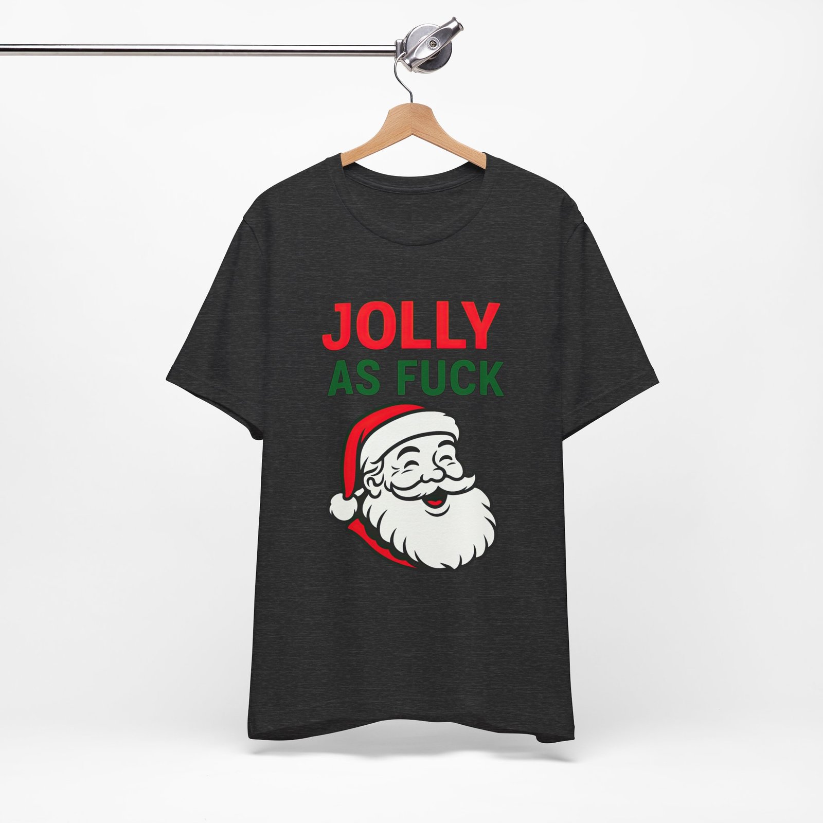 Soft, breathable, and absolutely unfiltered—this unisex tee features a bold neon-style “JOLLY AS FUCK” headline paired with an extremely cheerful Santa who looks like he just invented Christmas mischief. It’s bright, funny, and guaranteed to become your new seasonal chaos uniform.
