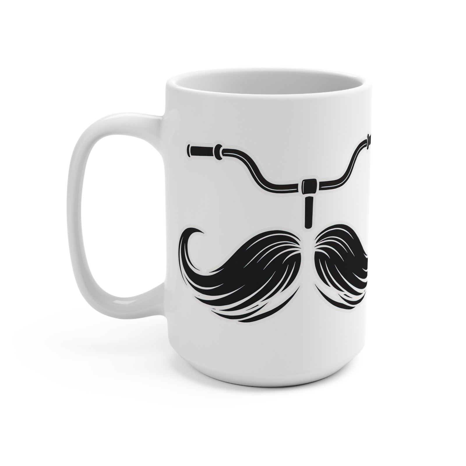 Start your day with caffeine, comfort, and the world’s most innocent-looking dirty joke. This 15oz ceramic mug features a bold vintage-style illustration: a perfectly groomed handlebar mustache cleverly drawn to double as a pair of retro bicycle handlebars. Above it, playful curved lettering announces “MUSTACHE RIDE” in thick, distressed type.